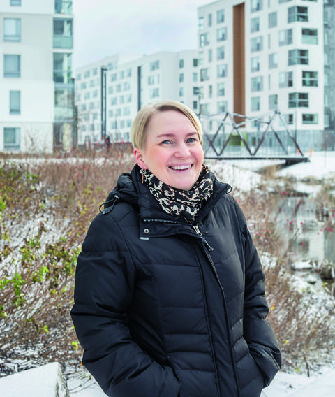 “There hasn’t been anything to complain about,” says Heli Mylläri with a laugh. She has lived in the area’s first apartment block for five years.