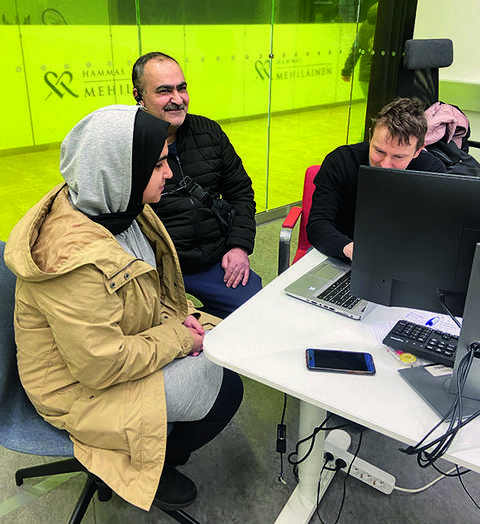 Rintala is helping Maryam Bilal, who is from Iraq, fill in an application for citizenship. Her father, Fayyadh Bilal, who came with her, knows Hello Espoo Info well. He has previously received help with questions concerning healthcare services.