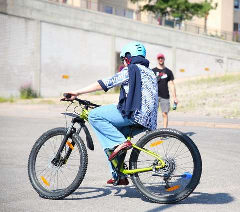 At our cycling courses, we start at the basics: our bicycles transform into kick bikes by folding the practice pedals upwards. This way, participants can start to get a handle on balance and steering. After that, they can move on to pedalling. When they have a grasp of the basics, we move on to traffic culture and the rules of the road and start to encourage the participants to ride on their own. In addition to myself, the courses have coaches as instructors. Many of them are from an immigrant background. The courses have mainly been Finnish and English, but sometimes, other languages like Hindi or Urdu have been helpful as well.
