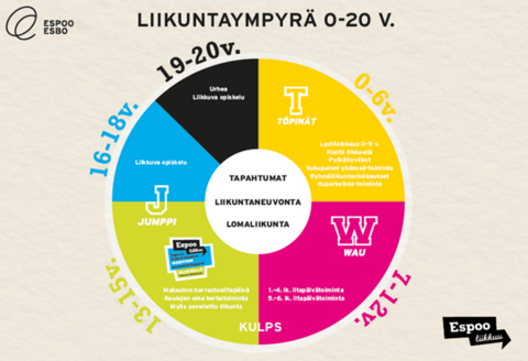 - Töpinät activities: Physical activity for families and children aged 2–8. In the activities, children and parents are physically active together. 1st–4th grades: In primary schools, diverse physical activity for 7–10-year-olds takes place one afternoon a week. The activities are open to everyone.