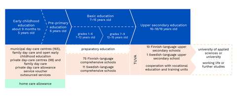 Early childhood education can be organised by the municipality or a private operator. The City of Espoo organises early childhood education in Finnish and Swedish. There is also Swedish language immersion early childhood education and bilingual Finnish-English early childhood education on offer. Private operators can also offer early childhood education in other languages.