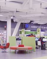 Iso Omena library is designed to make it easier for municipal residents to use various services. Library services combined with other public and private services and facilitates enable the use of different services at the same time. In connection with the youth section of the library, there is Ohjaamotalo for young people. This service center is located in the central Iso Omena shopping center at a public transport hub.