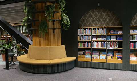 Lippulaiva library is an example of commitment to sustainable development and the inclusion of residents. Recycled furniture, durable materials, original interior design and services such as an open community kitchen make the library an inviting and homely communal living room. The library is easily accessible in the new Lippulaiva city center, which combines apartments, commercial services and a public transport hub.