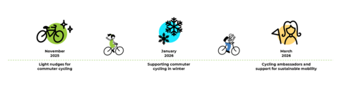 The ”More (than) Biking Lab” consists of three co-creation workshops, as well as pilot clinics that further process the results of the workshops. In the workshops, concrete ways to increase commuter cycling are developed and best practices and expert support are shared. The workshop themes are (1) light ’nudges’ for commuter cycling, (2) supporting commuter cycling in winter, and (3) cycling ambassadors and support for sustainable mobility.