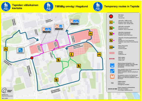 Changes to temporary routes in Tapiola as of 15 January 2025