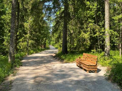 Korennon kierros is an accessible nature trail located in Lakisto. It is easy to reach by bus or car, and both ends of the trail have drop-off points and plenty of free parking. The trail is 610 meters one way and is mostly accessible, with some sections classified as demanding accessible. These more demanding parts can be completely avoided. The trail surface is compact crushed stone and about 2 meters wide throughout.