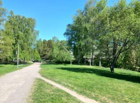 A park next to the Iivisniemi neighborhood with park walkways and a playground.