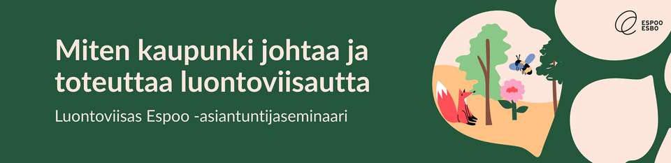 Luontokato haastaa etenkin kasvavat kaupungit. Espoossa, joka on Suomen toiseksi suurin, nopeasti kasvava kaupunki, kaupunkiympäristön toimiala on tarttunut haasteeseen. Luontoviisas Espoo − tiekartta kohti luonnon kokonaisheikentymättömyyttä on juuri julkaistu.