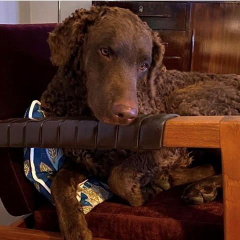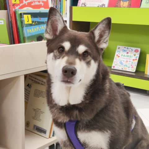 Dani on 5-vuotias australian labradoodle. Dani vierailee Haukilahden kirjastossa.