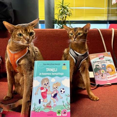 Lenni ja Marvin ovat abessinialaisia kissoja. Lenni ja Marvin vierailevat Entressen kirjastossa.
