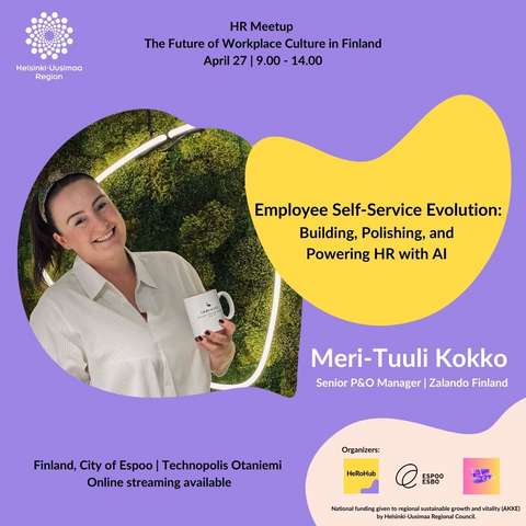 | 09:25–09:50 | Henkilöstön itsepalvelun kehitys: HR:n rakentaminen, hiominen ja vahvistaminen tekoälyn avulla Meri‑Tuuli Kokko | Zalando Finland Oy |