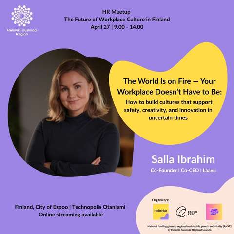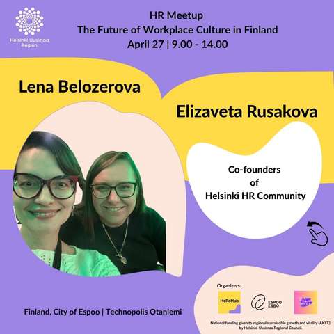 Järjestäjät: Espoon kaupunki(ulkoinen linkki, avautuu uuteen ikkunaan), TA Café Helsinki(ulkoinen linkki, avautuu uuteen ikkunaan) ja HeRoHub-yhteisö henkilöstöhallinnon ammattilaisille. Kansallista rahoitusta Alueiden kestävään kasvuun ja elinvoiman tukemiseen (AKKE) saatu Uudenmaan Liitolta.(ulkoinen linkki, avautuu uuteen ikkunaan)
