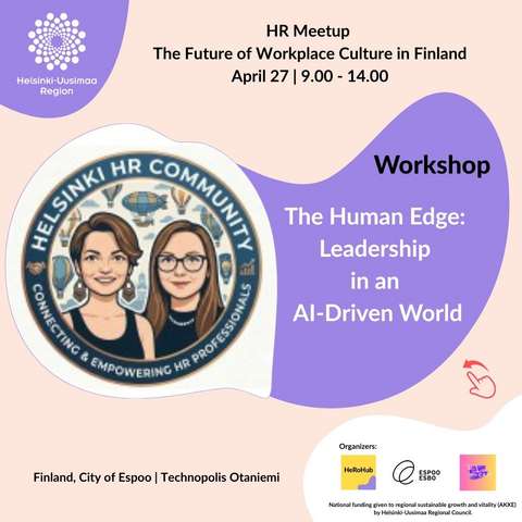 Register to HR meetup 27.4.2026!(ulkoinen linkki, avautuu uuteen ikkunaan)Suomalainen työpaikkakulttuuri kehittyy. Hybridityöympäristöt, AI:n vastuullinen käyttöönotto, muuttuvat viestinnän tavat ja yhä monikulttuurisemmat tiimit muokkaavat organisaatioiden toimintaa uusiksi ja haastavat sitä, kuinka parhaista työntekijöistä pidetään kiinni. Muutokseen sopeutuminen aikaisessa vaiheessa auttaa yrityksiä vahvistamaan henkilöstönsä sitoutumista ja luottamusta sekä houkuttelevuuttaan työnantajana. Sopeutumisessa jälkeen jäävät yritykset taas saattavat kohdata yhä vaikeampia haasteita ja menettää parhaimpia tekijöitään.