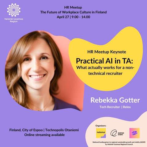 | 09:05–09:25 | Käytännön tekoäly rekrytoinnissa: mikä todella toimii ei‑tekniselle rekrytoijalle Rebekka Gotter | RELEX |
