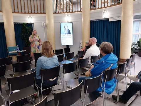 Tisdagen den 19 augusti träffades ett tiotal ivriga lyssnare på Berghälls bibliotek för att höra Michaela von Kügelgen berätta om sin feelgoodbok Sommar på Villa Hilda.