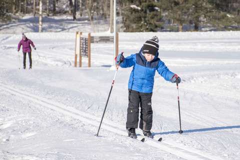 I Esbos omväxlande terräng finns det skidspår på sammanlagt 200 km, av vilka 60 km är belysta (kl. 6:00 ~ 22:00). Oitans, Albergas och Centralparkens skidspår sköts först. Efter snöfall får man alla skidspår i skick på 1-3 dagar. Idrottscentralen upprätthåller skidspår. I ulkoliikunta.fi -tjänst hittar du information om när spåret senast har körts upp eller kontrollerats samt om stil, längd och belysning.