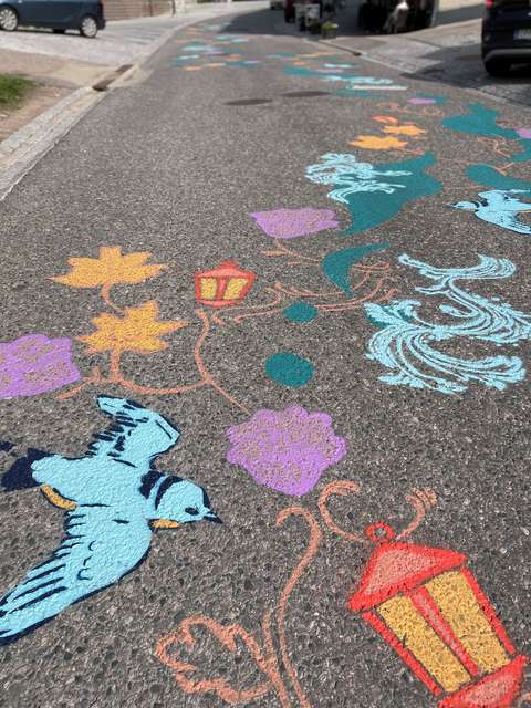Med ett gatukonstverk lättas gasfoten i Köklax i Esbo
