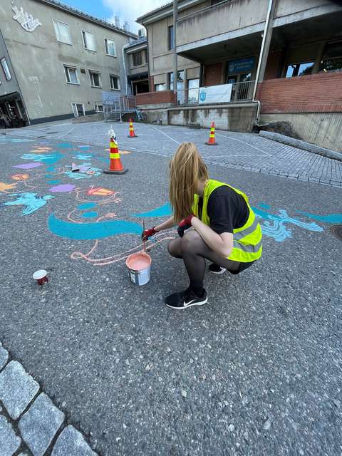 Konstverket finansierades av Autoklinikka. ”Vid planeringen av verket har man noga beaktat att det inte blandas ihop med de officiella vägmarkeringarna. Dessutom tog vi hänsyn till tillgänglighetsaspekterna. Målningen genomfördes med respekt för miljön med miljövänliga målarfärger. Verket borde också tåla mycket väl varierande väderförhållanden, säger Oksanen från Autoklinikka.