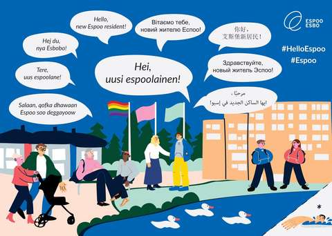 Esbo stad växer snabbt och det är viktigt för oss att våra invånares vardag fungerar smidigt. Vi vill önska alla nya invånare som flyttat till Esbo välkomna till sin nya hemstad. Därför skickar vi en postkortshälsning till alla nya Esbobor.