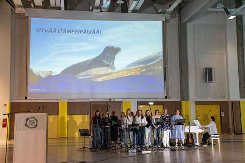 På festen berättade verkställande direktören för John Nurminens Stiftelse Annamari Arrakoski-Engardt om Östersjödagen och dess betydelse. Riksdagsledamot och ordförande för Esbo stadsstyrelse Saara Hyrkkö talade om Esbo som en maritim stad och varför Östersjön måste skyddas. Temat följdes upp också i musiken som framfördes av trubaduren Ilmari Läntinen och elevernas och personalens gemensamma kör. På festen visades också en video om ungas tankar om Östersjön.