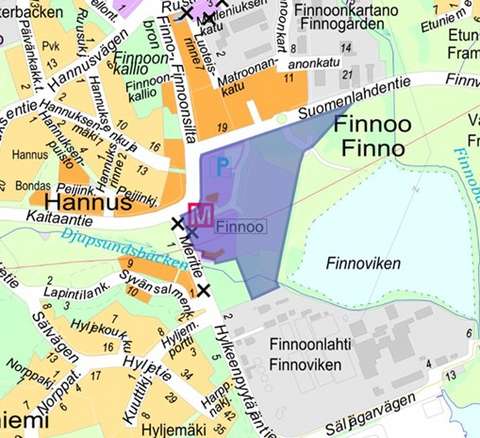 Gator och trafikEsbovikenEsbo stadsteknikcentral har börjat utarbeta gatu- och parkplaner för Finno centrums detaljplaneområde (områdesnummer 441501). Planområdet omfattar Kikargatan och de allmänna parkeringsområden som finns i anslutning till den, Kikargången, Skarpnässtigen, Skrattmåsstråket, torget Skarpnäs och Finnotorget samt parkområdena Kikarparken, Djupsundsskogen och Skarpnäs.
